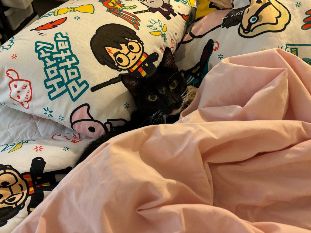 I gave Hedwig space that first day, doing my own thing whilst watching him out of a corner of my eye. I went to bed, leaving the door open. Hedwig had been ignoring me all day, and then suddenly, just as I was falling asleep, he jumped up onto the bed and snuggled into me. That was a pretty special moment.
